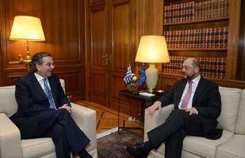 Κατά τη συνάντησή του με τον πρωθυπουργό Αντώνη Σαμαρά, ο κ. Σουλτς ενημερώθηκε για τις προτεραιότητες της ελληνικής προεδρίας, ενώ οι δυο τους συμφώνησαν πως η χώρα βγαίνει από τη βαθιά κρίση, αλλά και ότι οι εταίροι και δανειστές πρέπει να τηρήσουν τις δεσμεύσεις τους.