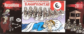 Η Γερμανία μεταμφιέστηκε και με νέο look έρχεται να μας «υποδουλώσει» με μια νέα οικονομική αυτή τη φορά κατοχή. Το μουστάκι του Χίτλερ έχει σχήμα το ευρώ, το κάρο της Δημαρχίας είναι το νέο ταξί, λίστα του Σίντλερ δεν υπάρχει για να ξεφύγουμε, και το νέο αφρόλουτρο θα είναι από το άτυχο δημόσιο υπάλληλο.