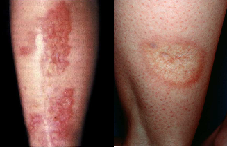 Η Λ.Ν. χαρακτηρίζεται από μονήρεις ατροφικές πλάκες σαφώς αφοριζομένες μεταξύ τους ή και συνενούμενες μεταξύ τους. Εντοπίζονται αυτές στις κνήμες συνήθως περιμετρικά με επιφάνεια στίλβουσα και στερεά προσκολλημένη στους υποκείμενους ιστούς, με ευρυαγγείες και μικρή απολέπιση σπάνια με εξελκώσεις, δερματική ατροφία.