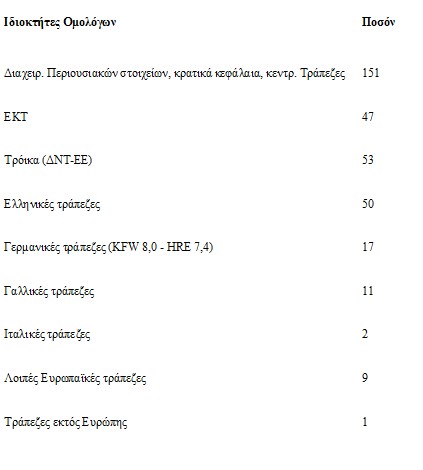 ΠΙΝΑΚΑΣ Ι: Ομόλογα δημοσίου σε δις €, με ημερομηνία 13.07.2011, συνολικού ύψους 341 δις €